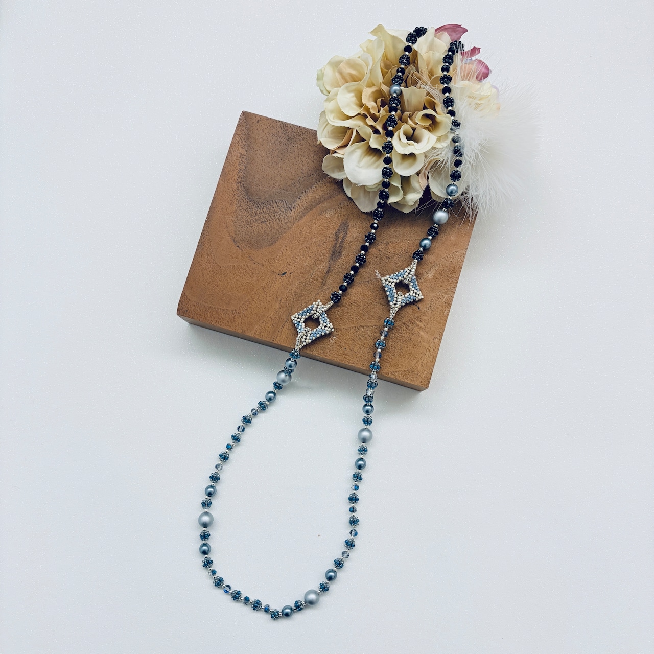 ビーズステッチで繰り返しロープ部分を編んでいきます。細かいビーズを使用していますがステッチ自体は簡単です。前後を入れ替えて雰囲気を変えることもできます。