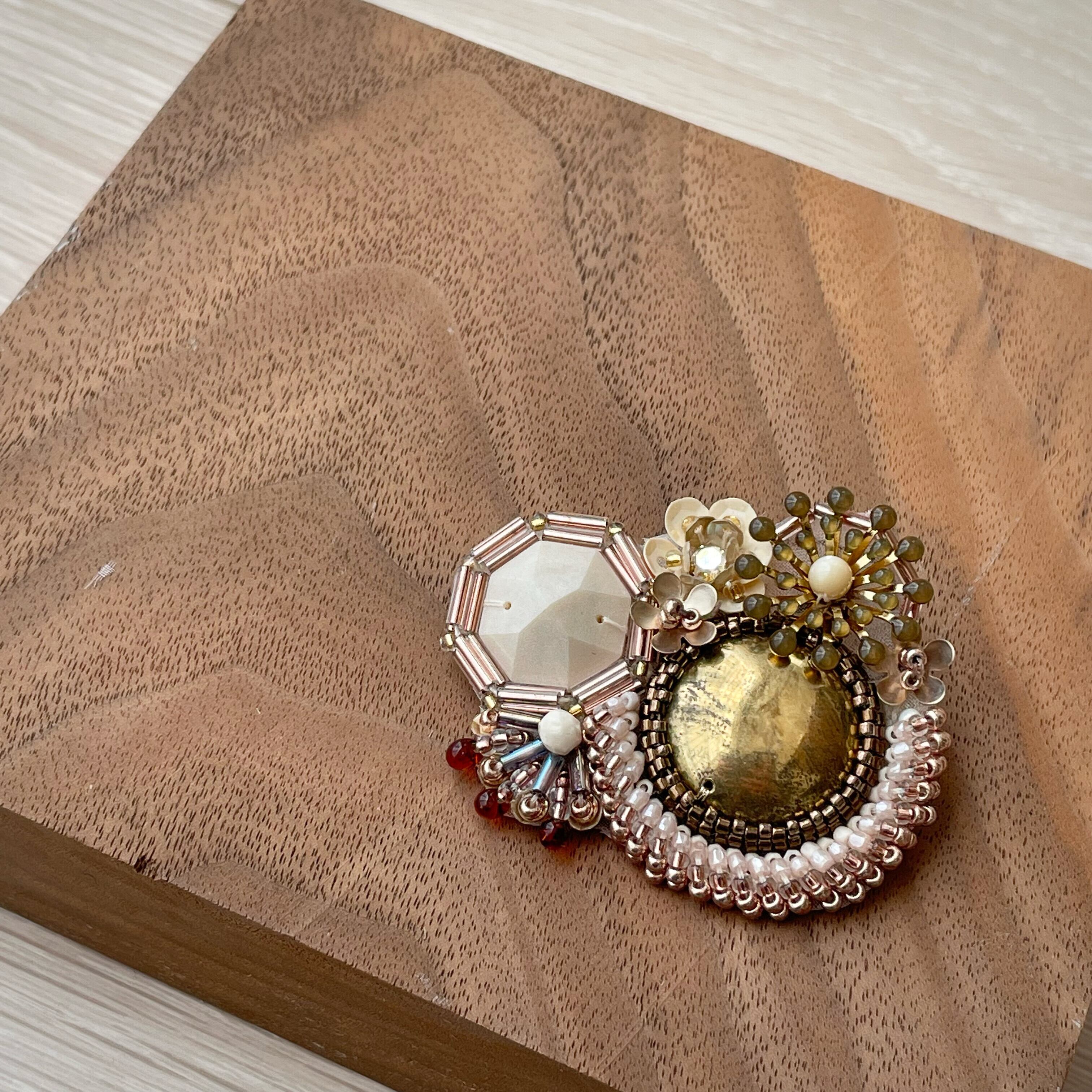 色々な素材を組み合わせて作るブローチです