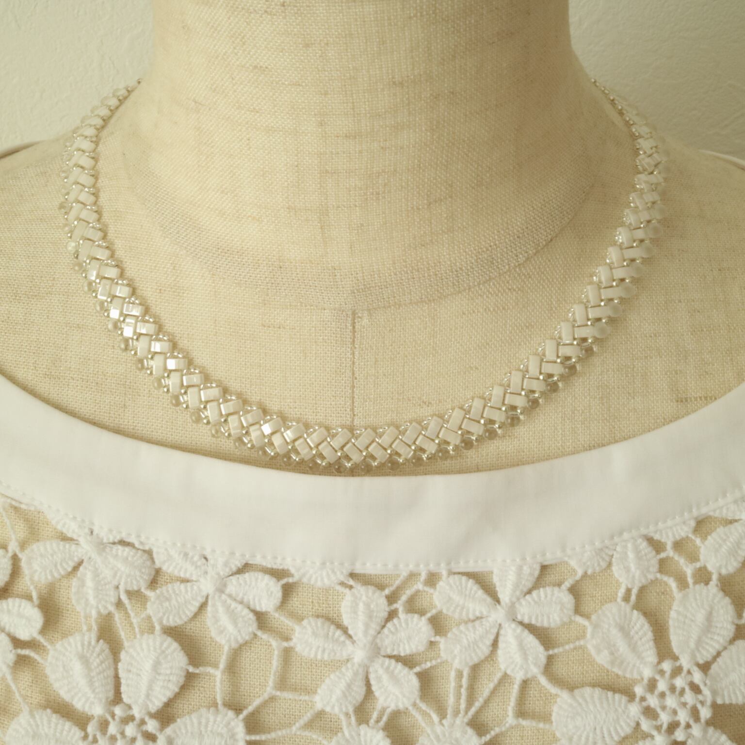 2ホールビーズを使って編んでいきます。長さの調節が出来ますので少し短めに仕上げてチョーカーにも。