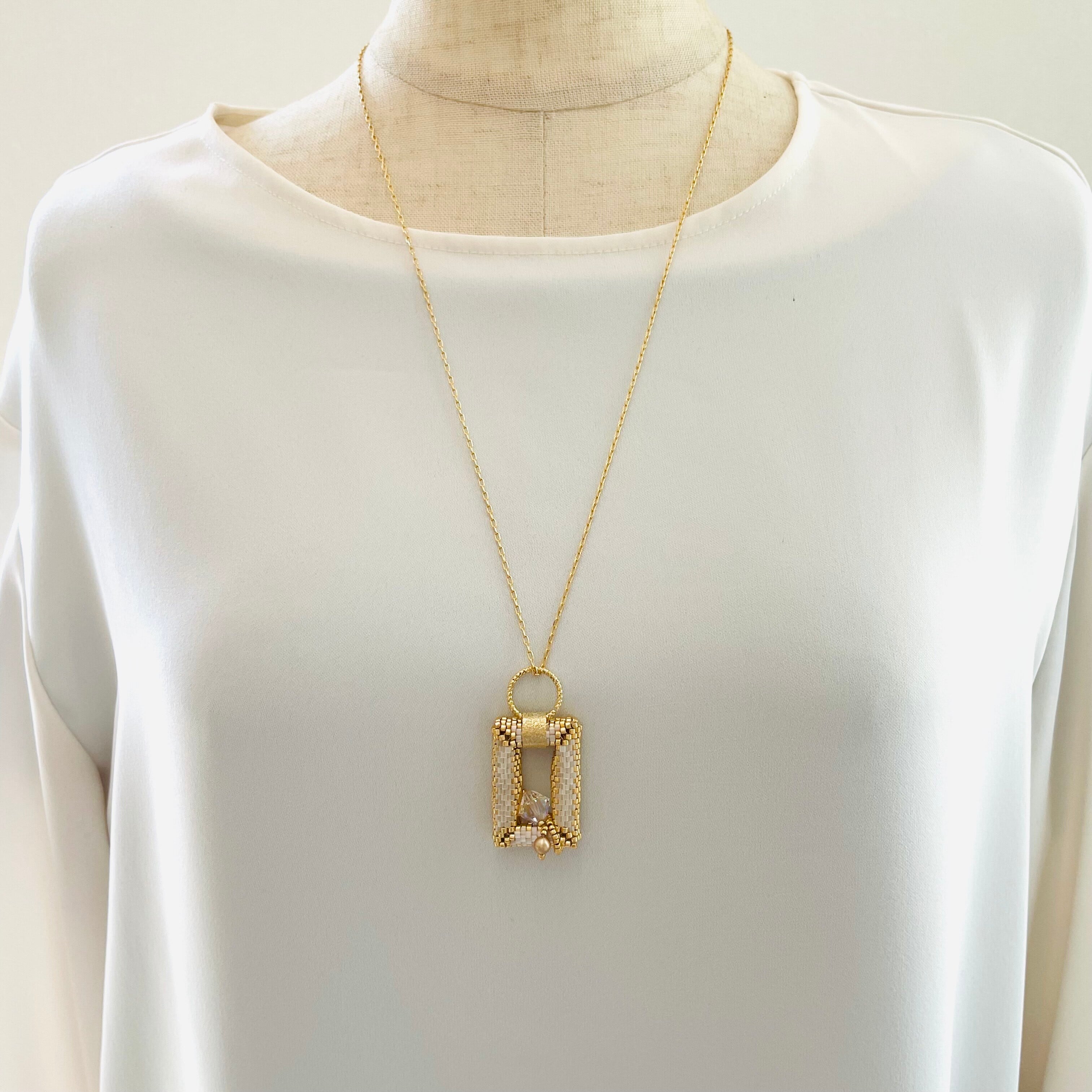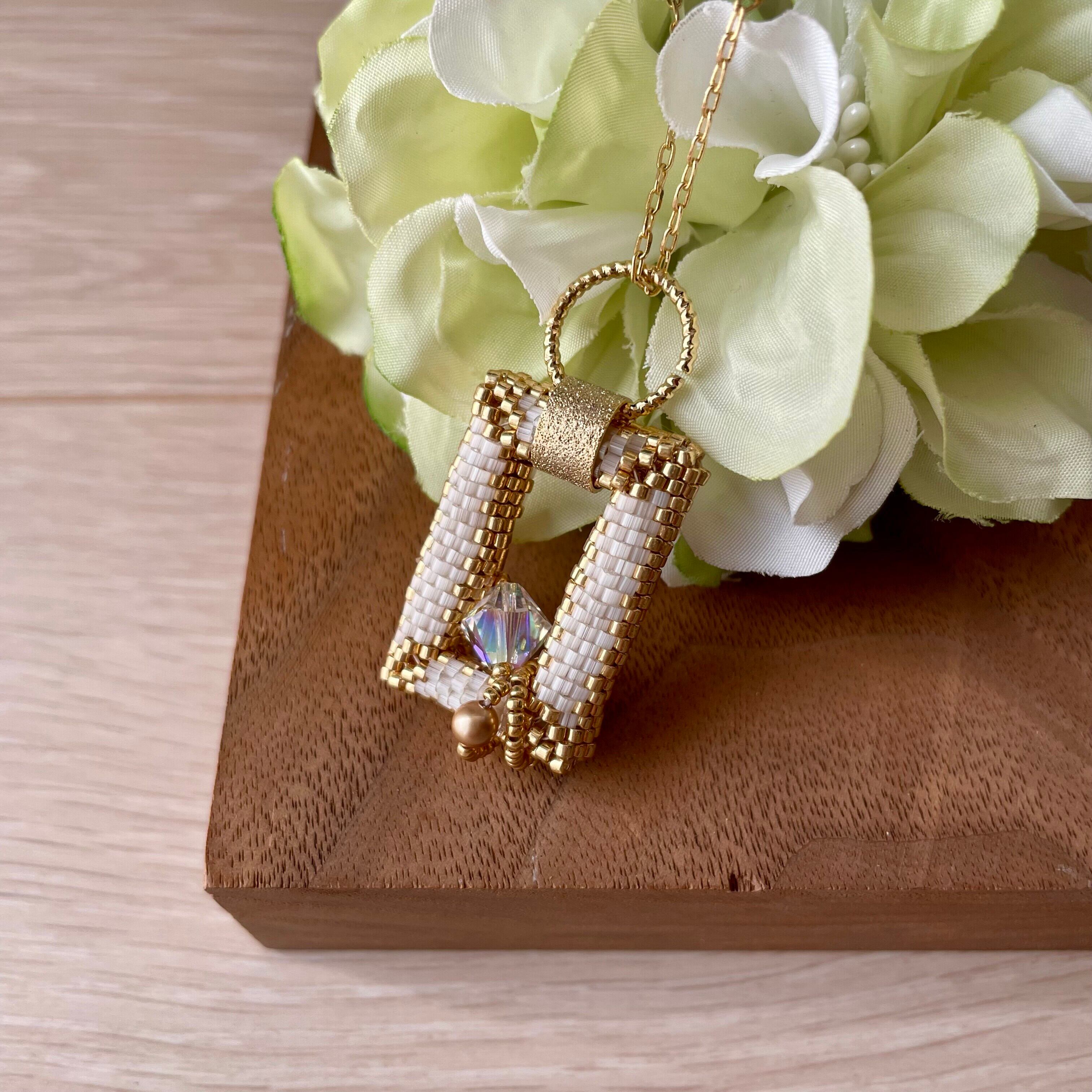 ビーズステッチで立体パーツを作ります。繊細なビーズを使用していますので必ず付属の針で制作して下さい。本体が出来上がったあとはスワロフスキービーズを飾って完成です。ジュエリー感のある仕上がりでどんなお洋服にもマッチします。